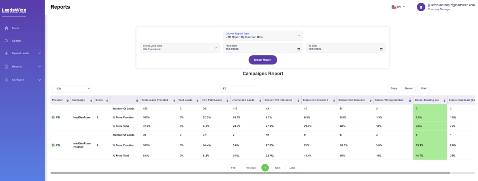 Our APIs suite allows easy integration with lead sources. Each lead submitted is assigned with multiple attributions and identifiers making it possible to track the lead along the nurturing funnel and providing meaningful reports.